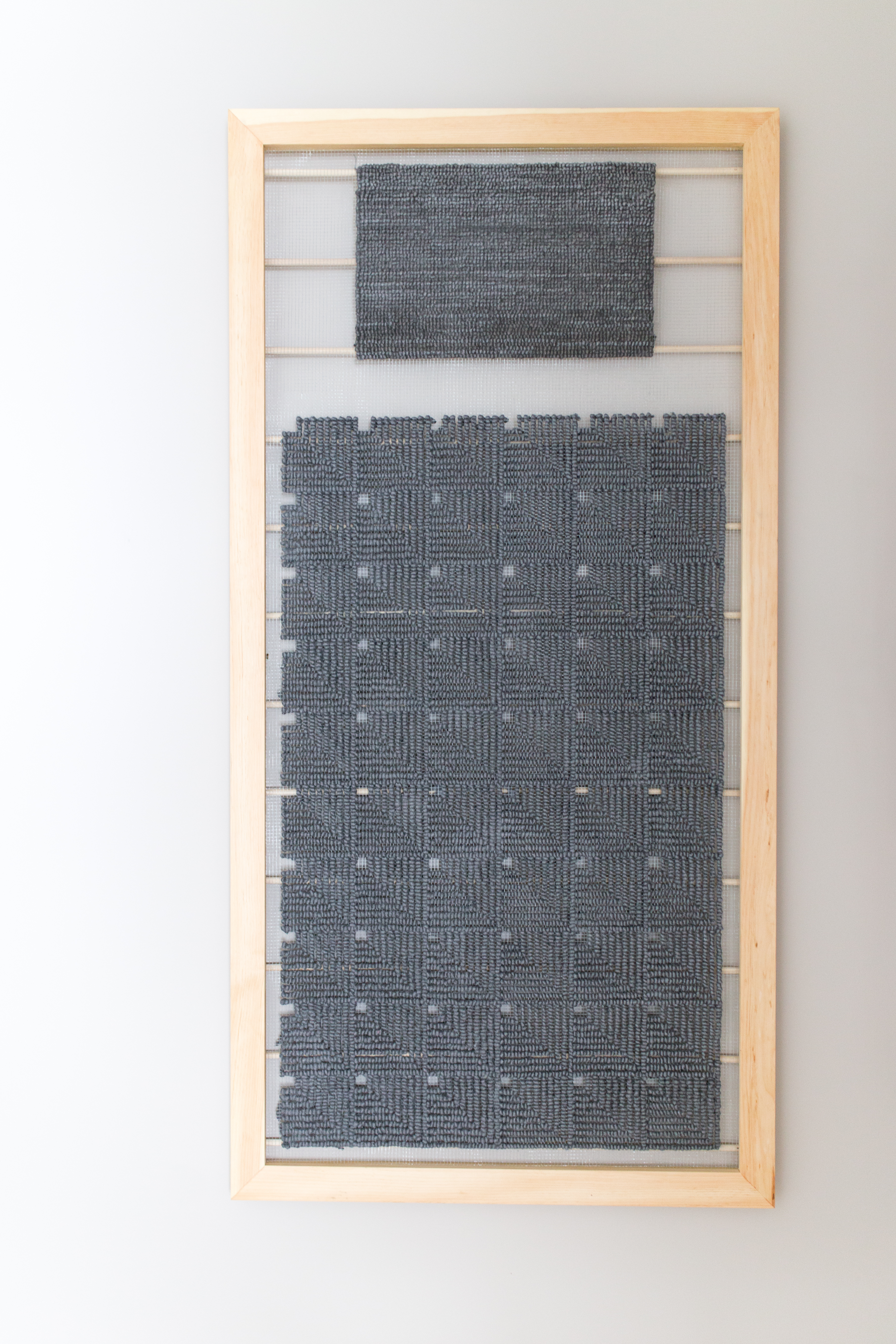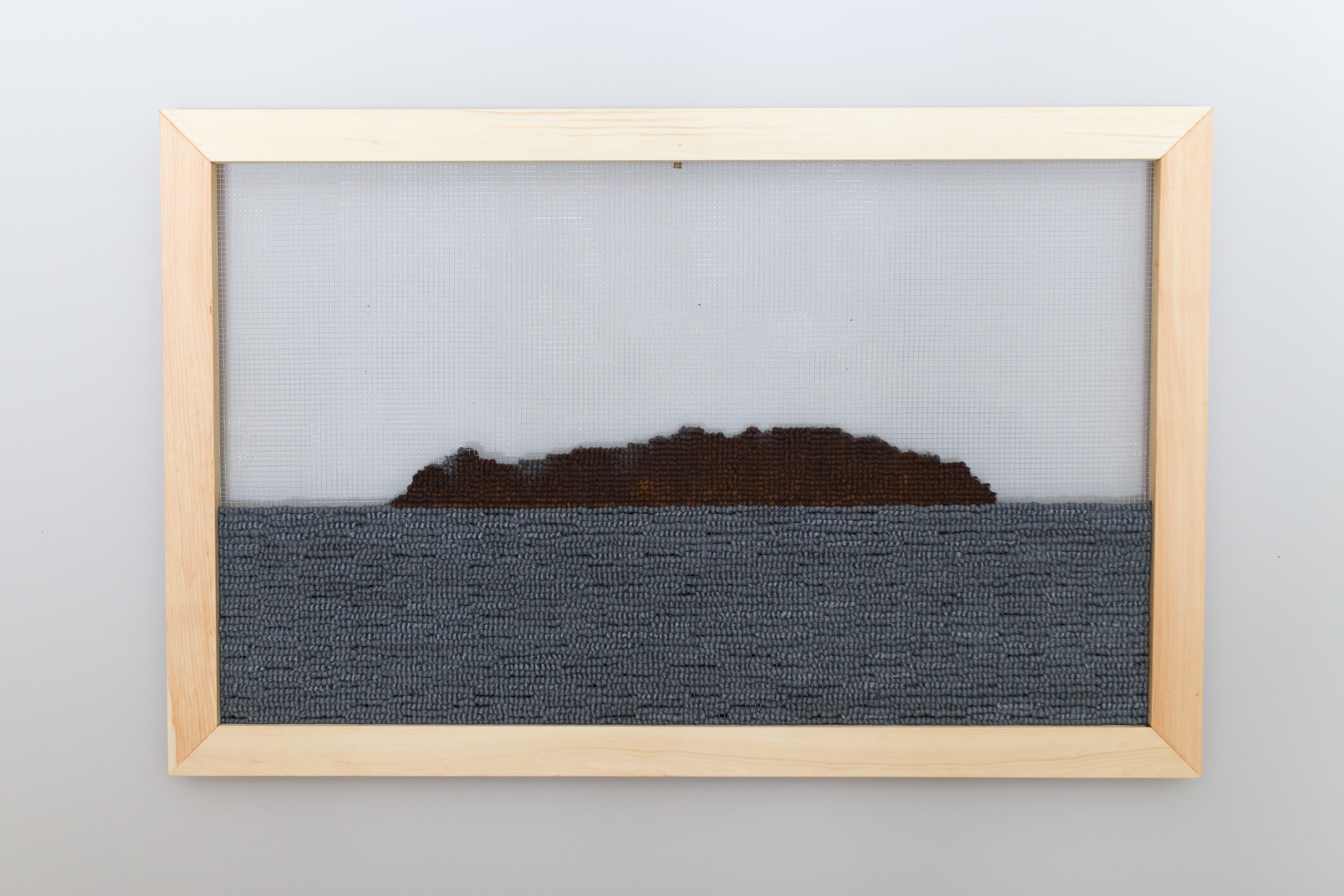 This new body of work was created while listening to these Monday conversations. Walker’s choice of steel wool reflects the hooked mat tradition of working with readily available materials. Gently rusted in places with salt water from both Troon, Scotland and Bonavista Bay, Newfoundland, the stark colour scheme and uncluttered placement evoke a psychological space. A bed represents a site of rest as we contemplate two polarities: “lands that we know and lands that we long for”.